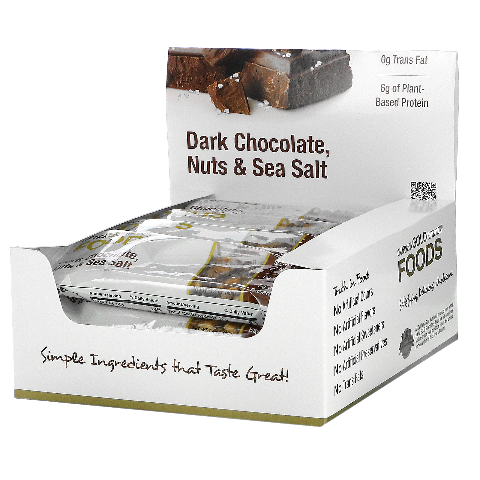 California Gold Nutrition, ألواح الشوكولاتة الداكنة مع المكسرات والملح البحري, 12 لوح, بوزن 1.4 أوقية (40 غ) لكل لوح